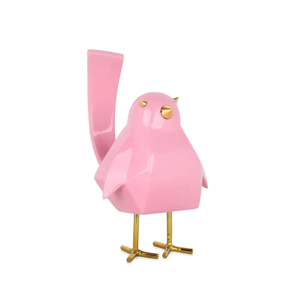 Cubic Bird 18cm Pink Resin Indoor Sculpture