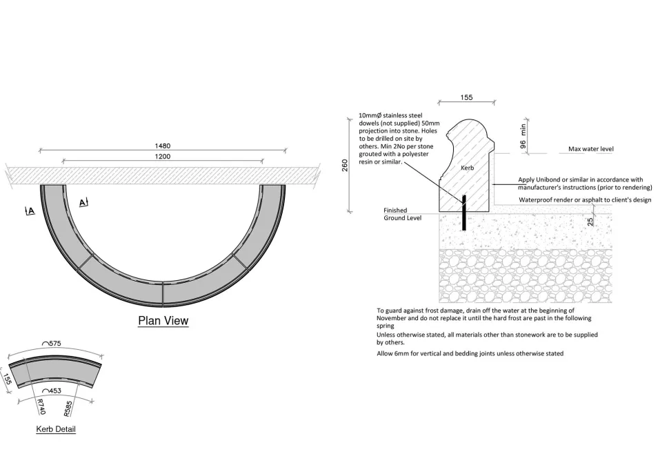 - Note: The pool surround requires a waterproof render. The image featured is the Small Half Circle Pool Surround and does not include a water pump
