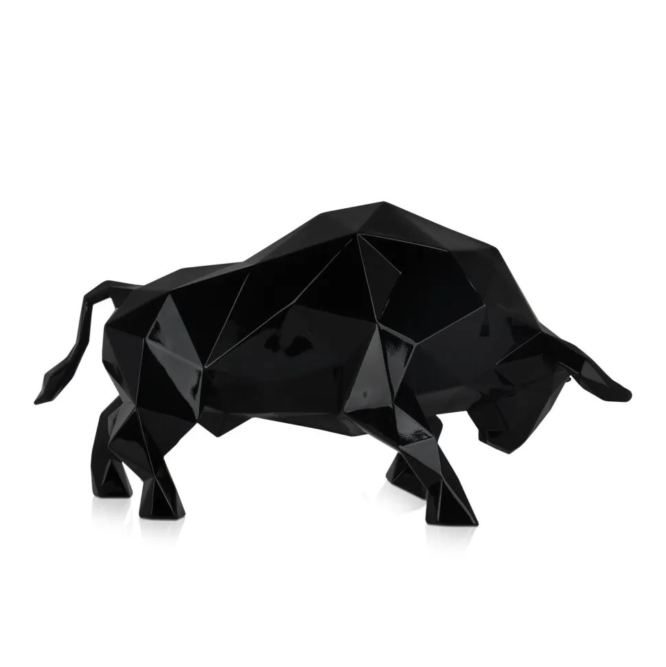 Polygon Bull 25cm Black Resin Indoor Sculpture