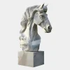 The Regal Horse Head Statue embodies a harmonious blend of strength and elegance. Expertly crafted from high-quality white marble this statue features lifelike details from the intricately sculpted mane to the expressive eyes that capture the grace of a noble steed. The natural veining within the marble enhances its depth and character ensuring that each piece is unique. Mounted on a robust marble base this sculpture offers both durability and timeless appeal making it a captivating addition to any setting.
