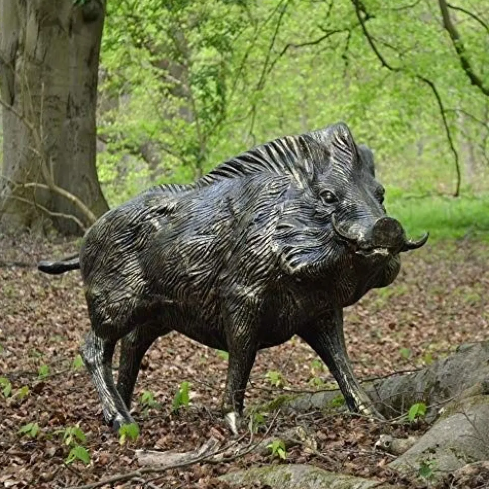 Wild Boar Life-Size Bronze Metal Garden Statue