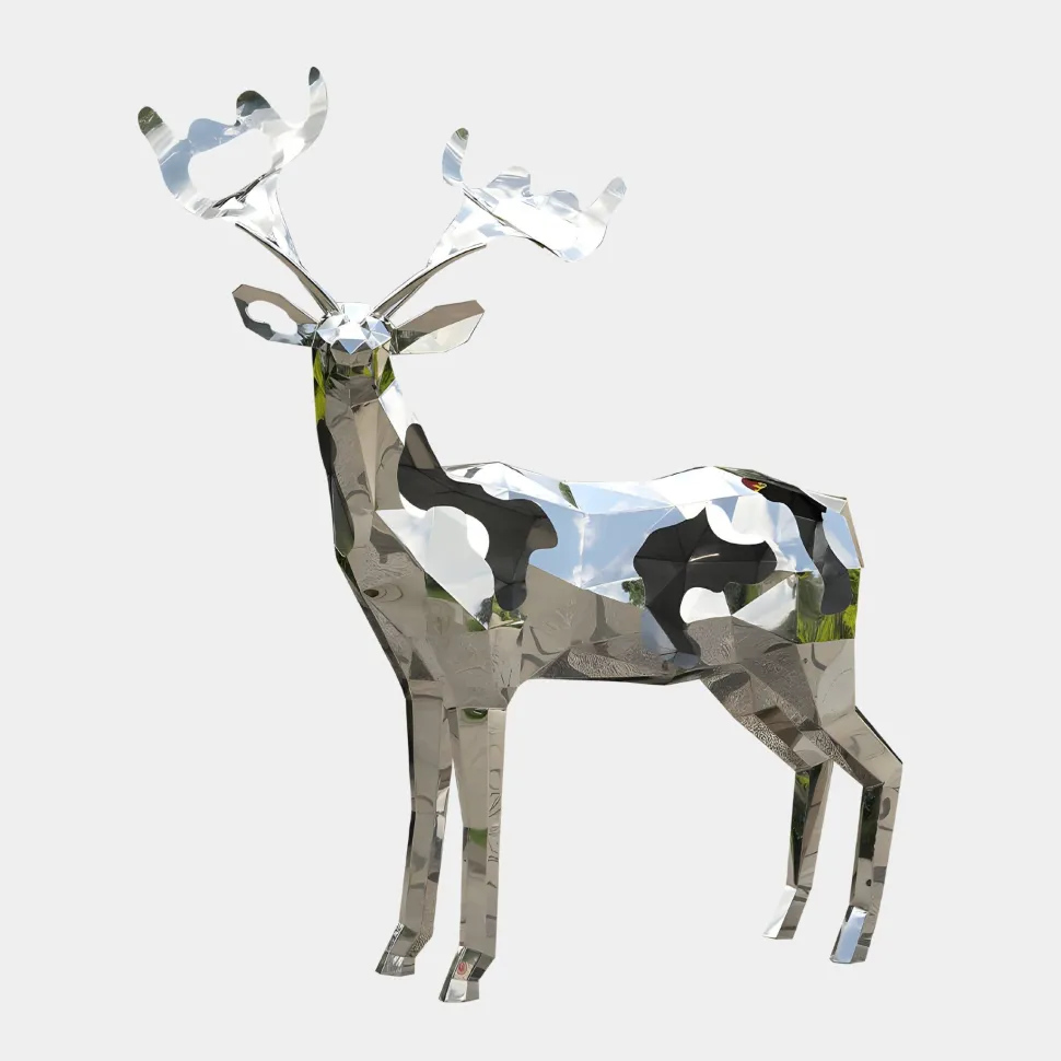 Introducing the Deer Geometric Garden Sculpture: a masterpiece that combines contemporary artistry with meticulous craftsmanship. This design transforms natural elegance into a striking geometric form, with angular facets that reflect light dynamically, creating mesmerising effects that shift with the environment. Constructed from premium stainless steel, its sleek polished finish adds a layer of sophistication making it an eye-catching addition to any space.