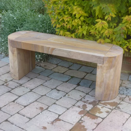 Made from polished rainbow sandstone, the bench is very stable and strong which means that it will stand up to the elements for many years. If you would like a modern and stylish bench for your outdoor space you can order this bench online and we can deliver it anywhere in the UK.