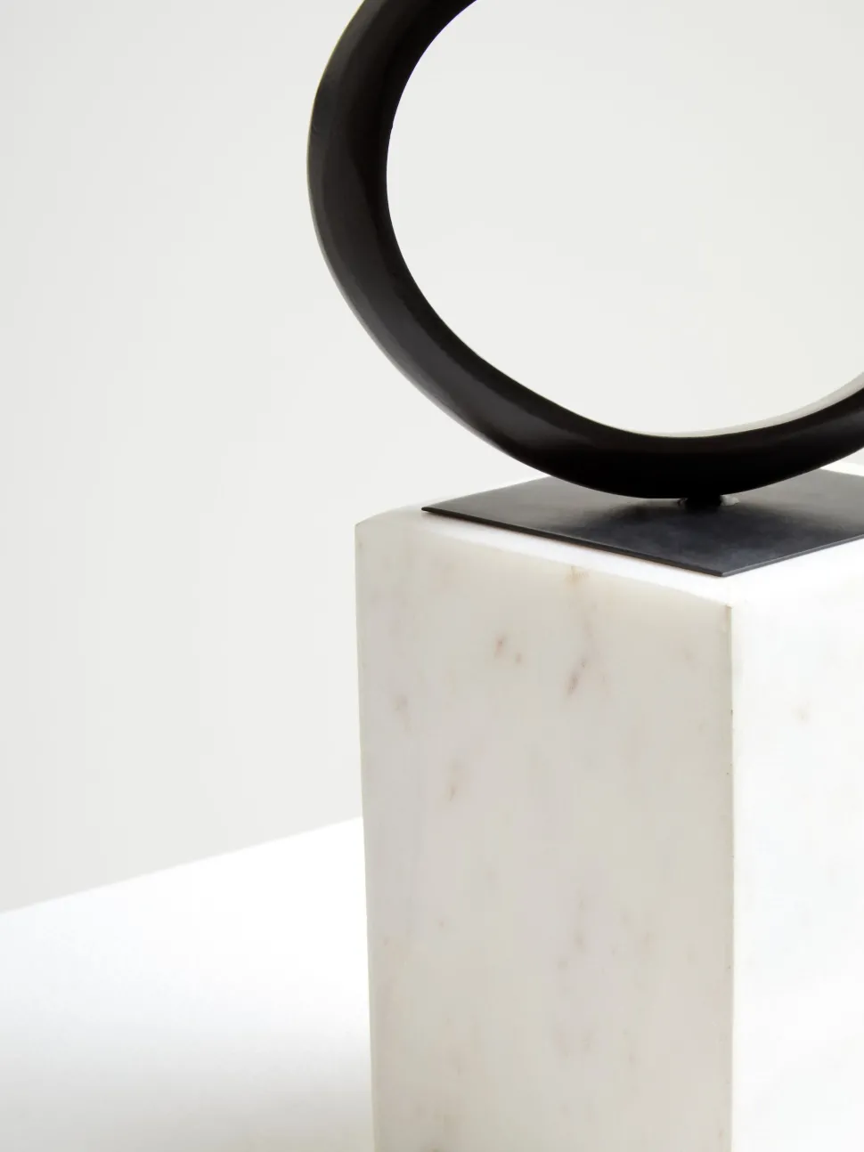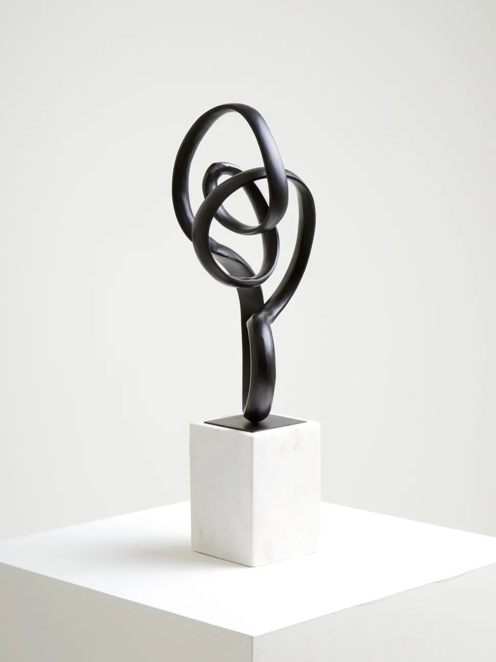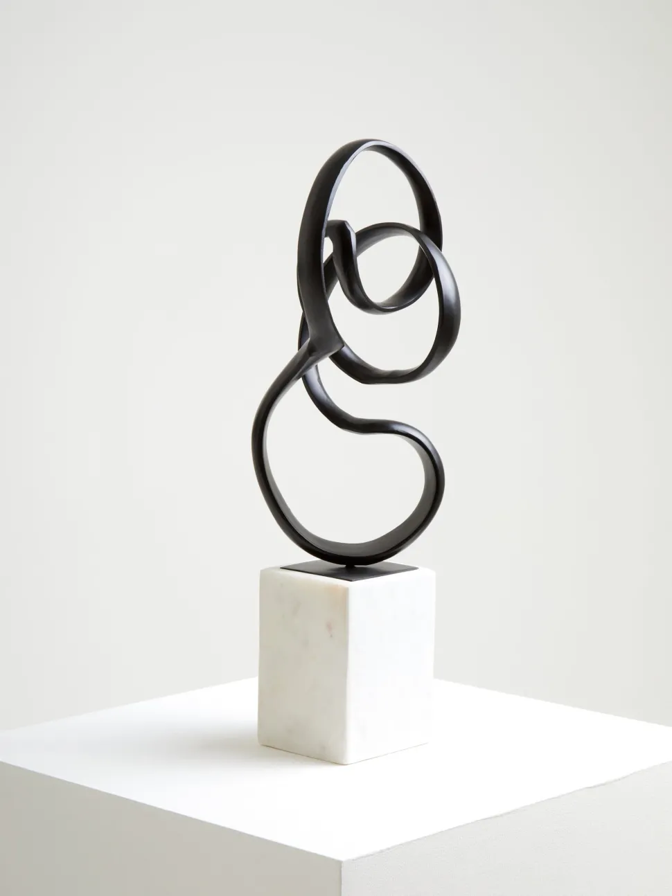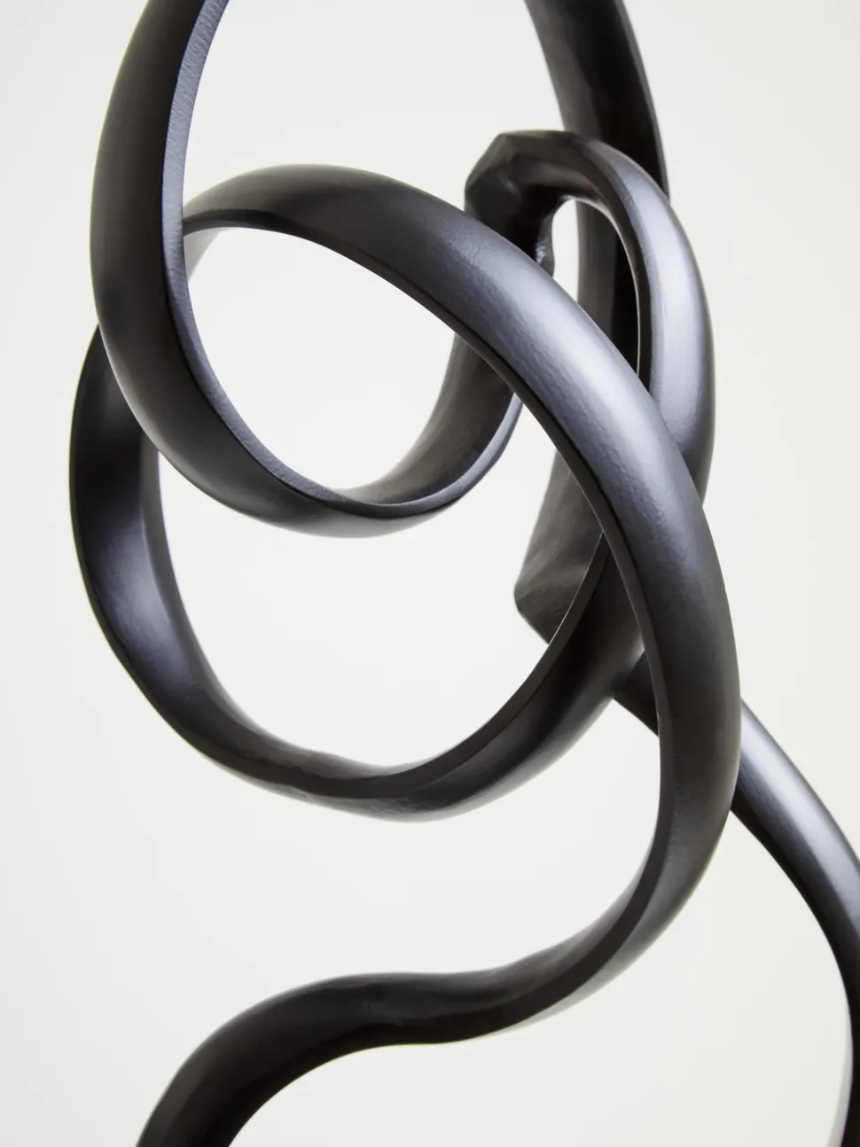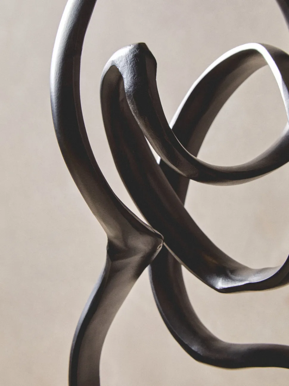 Overview: Outstanding in style this home decor sculpture is perfect as a centrepiece in the modern home. This sculpture is finished in wonderfully sleek black and when viewed closely you will see the marks of handcraft and individualities of every piece.